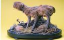 One of the neatest things I saw this summer was the Vegetable Lamb at the Museum of Garden History in London. At first I didn’t know what I was looking at , as I’d not heard the story of the vegetable lamb before. The legend of the Vegetable Lamb goes back as far as the year 436, and it tells the tale of a plant that grew living lambs as if they were flowers. According to the legend, the lambs were able to bend down and eat the plants surrounding it and were thus able to feed themselves for a while. Once all the surrounding plants had been munched away, the poor little lambs shrivelled up and died, that is if they didn’t get devoured by a wolf first. Below is an image taken from Henry Lee’s 1887 book entitled The Vegetable Lamb of Tartary: a Curious Fable of the Cotton Plant, to Which Is Added a Sketch of the History of Cotton and the Cotton Trade.